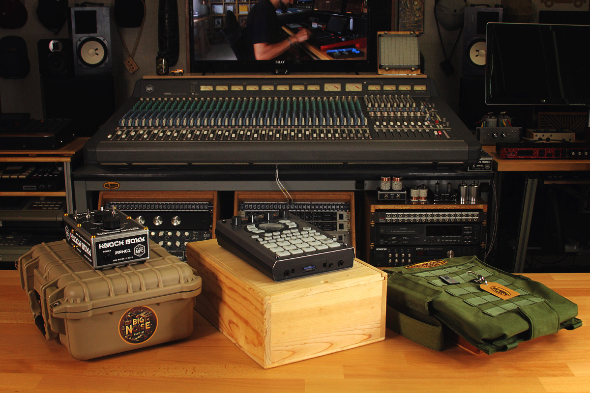 Grand prize giveaway items shown in the picture above, from left to right: 1st Prize Knock Boxx MPHC1 Gold API style stereo pre-amp with a hard flight case. 2nd Prize is a custom Roland SP-404SX sampler in a custom wood box. 3rd Prize Tactical Army Bag by Big Noise loaded with drum & sample packs, promotional Merch and bonus music. While everyone is cooking up beats, I’ll be cooking up the custom SP-404SX and custom wood box. Images coming in a month or two. Can you believe we’re giving all this away!